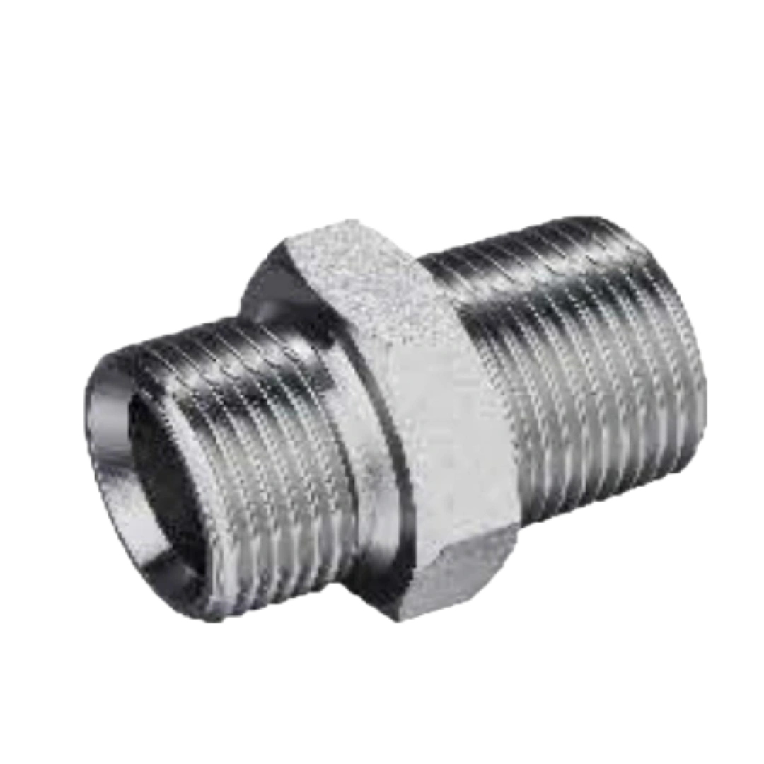 ?Elbow adapter with BSPP Male 60 DEGREE Seat and BSPT Male threads for mixed sealing system transitions.?