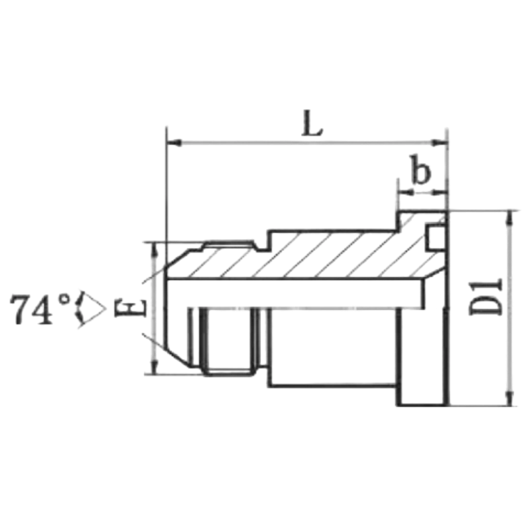 A JIC male 74-degree flare to L-series flange adapter.
