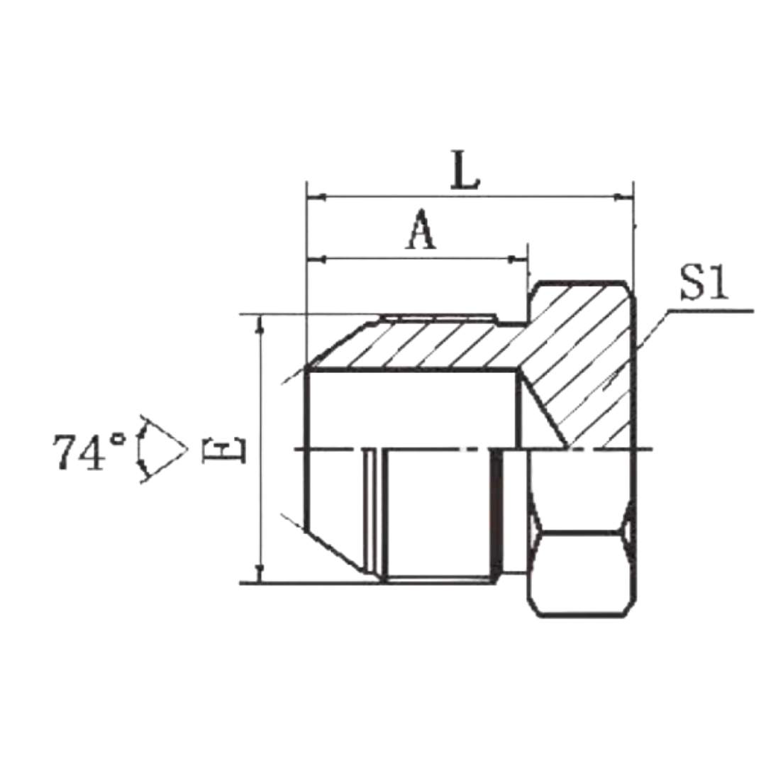 A threaded plug with a metric male 74 DEGREE cone, used to seal off hydraulic ports with metal-to-metal contact.