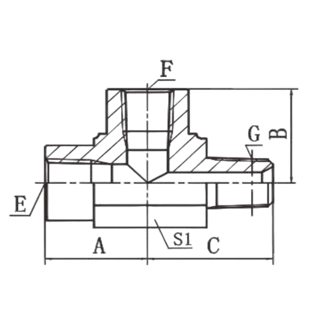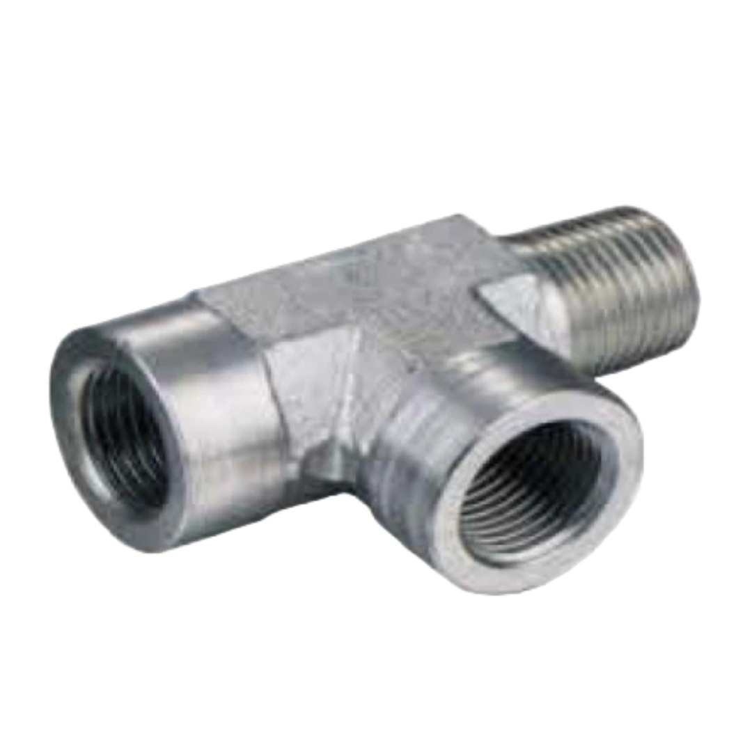 ?NPT Female/NPT Male Run Tee for inline three-way American thread distribution.?
