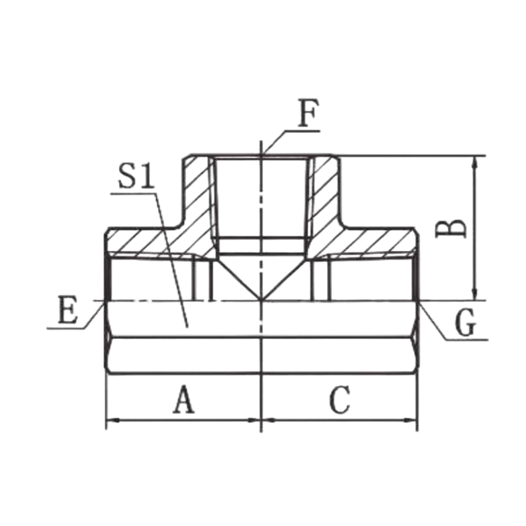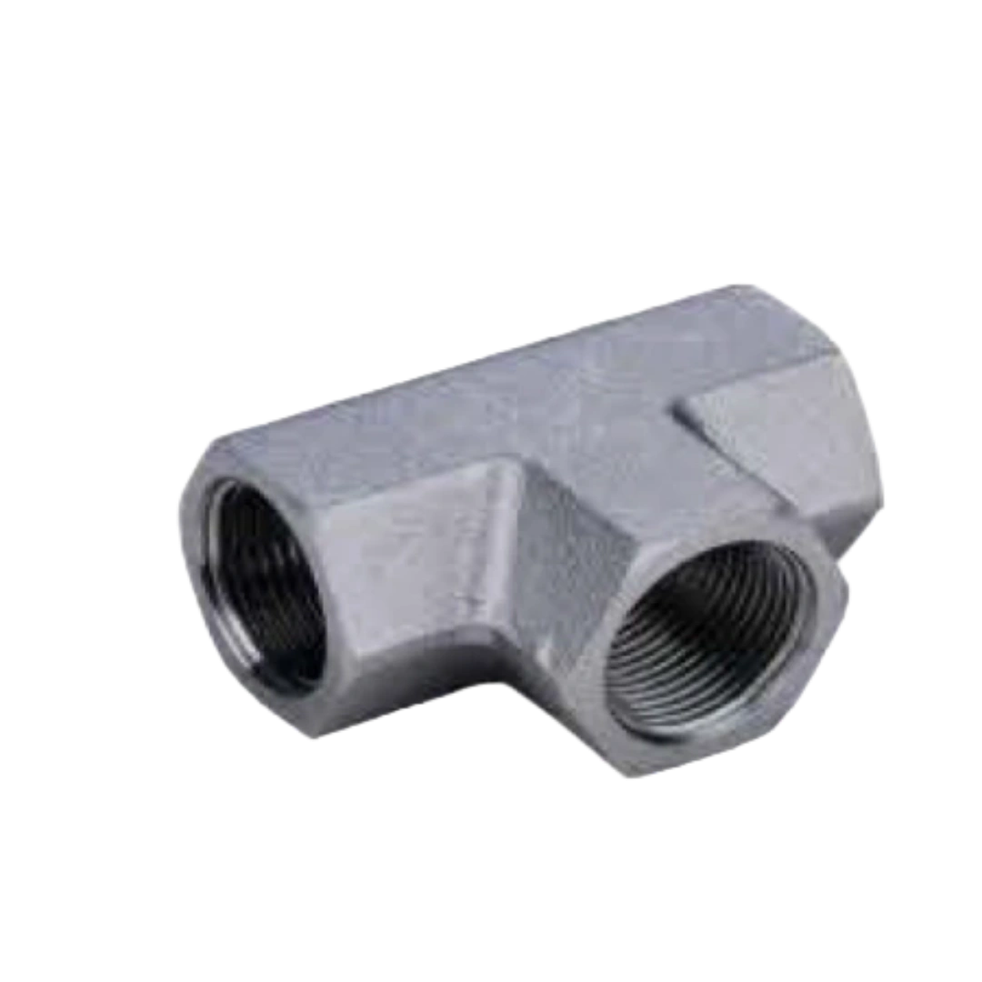 ?NPT Female Tee for three-way American standard thread distribution.?
